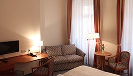 Buchen Sie eines unserer 25 Zimmer im Superior Standard. Jedes Zimmer ist mit einem eigenen Bad (Dusche oder Badewanne, WC, Fön), TV, Schreibtisch, Telefon und einer Minibar ausgestattet.